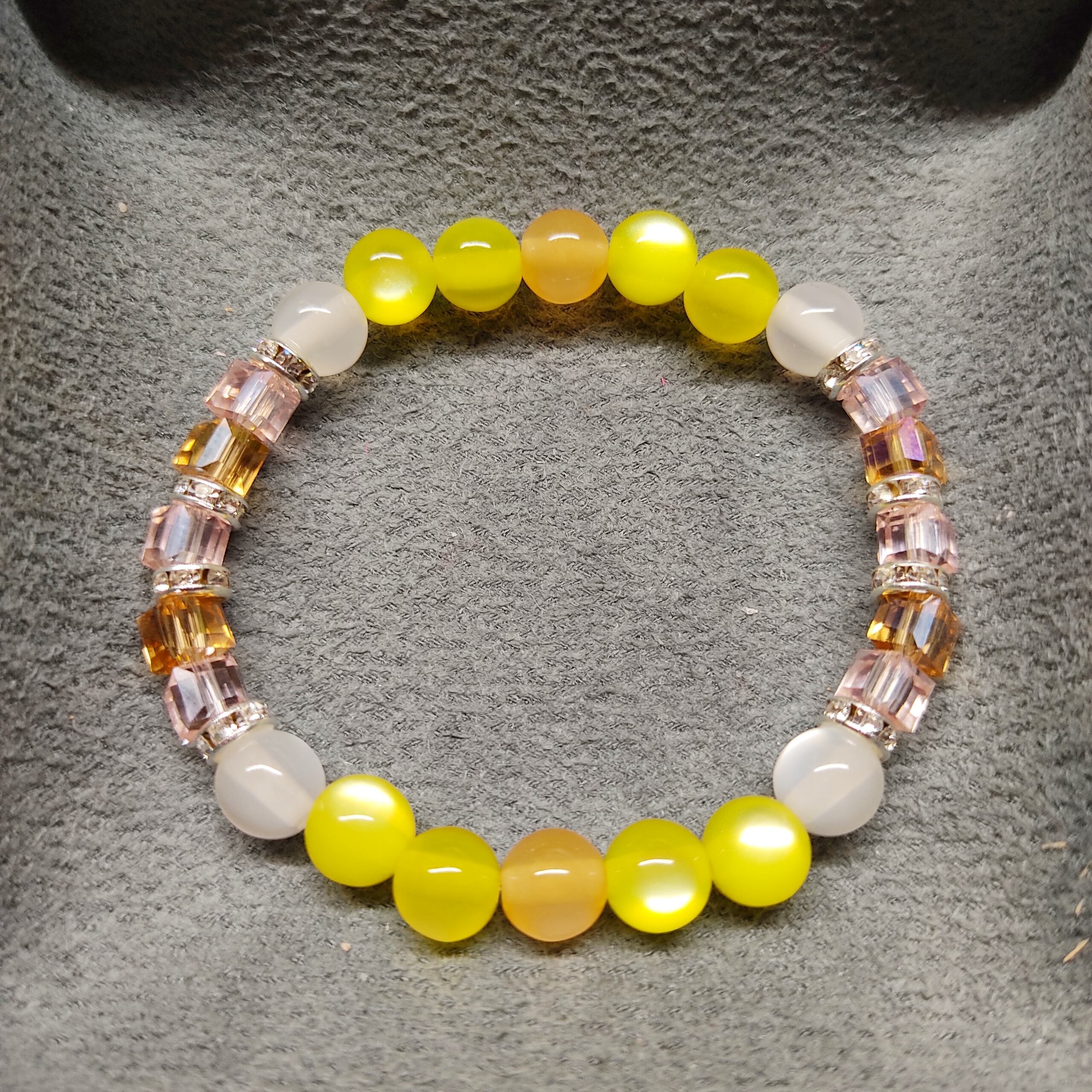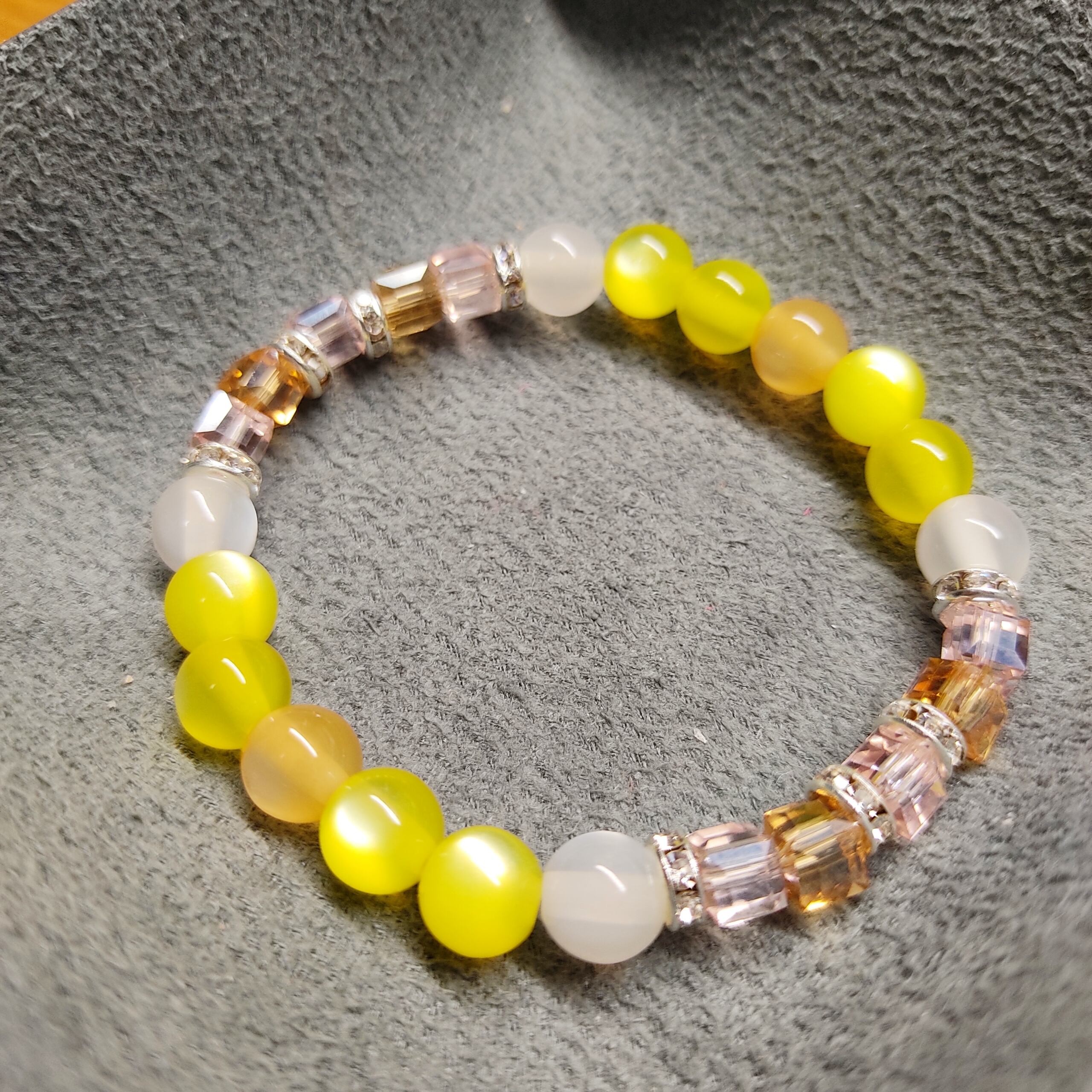 ハニーレモンのような美味しそうな色のキャッツアイビーズと